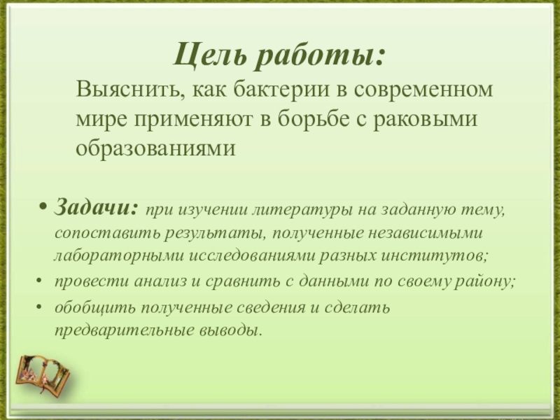 Выяснить, как бактерии в современном мире применяют в борьбе с раковыми образованиями