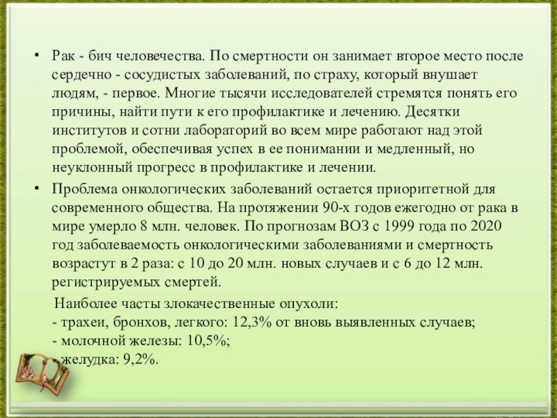 Слайд 5Рак - бич человечества. По смертности он занимает второе место после