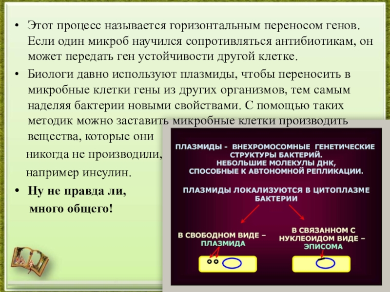 Слайд 11Этот процесс называется горизонтальным переносом генов. Если один микроб научился сопротивляться
