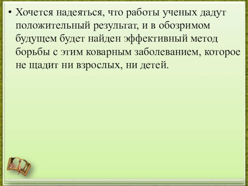 Слайд 22Хочется надеяться, что работы ученых дадут положительный результат, и в обозримом