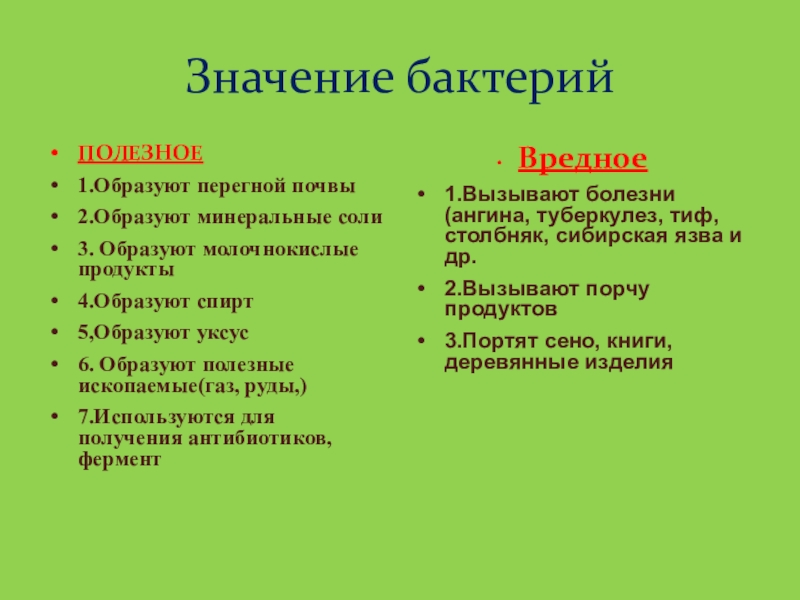 1.Вызывают болезни(ангина, туберкулез, тиф, столбняк, сибирская язва и др.
