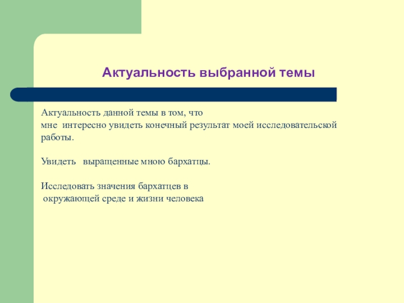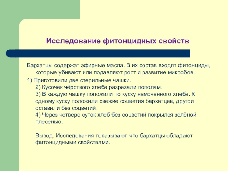 Вывод: Исследования показывают, что бархатцы обладают фитонцидными свойствами.