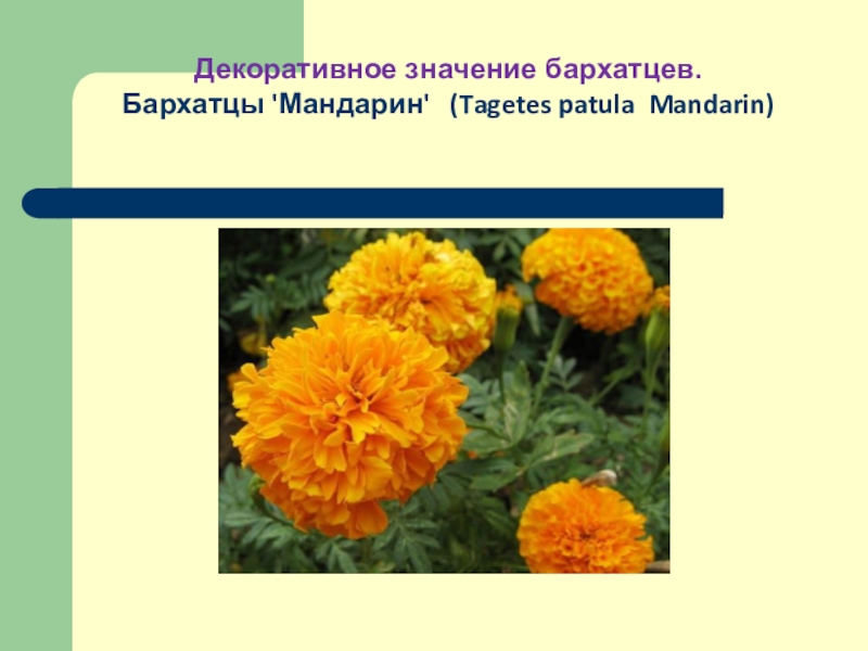 Слайд 16Декоративное значение бархатцев.