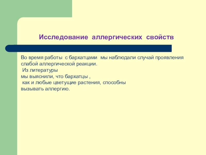 Слайд 15Исследование аллергических свойств