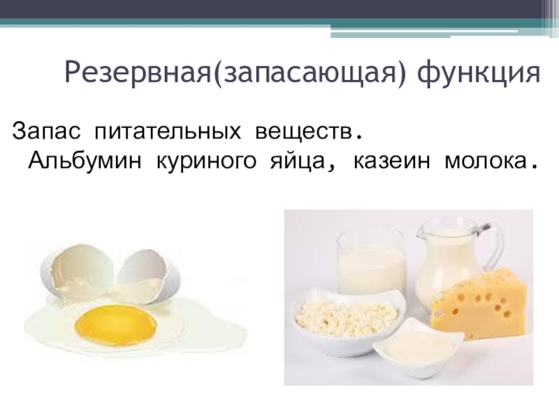 Запас питательных веществ. Альбумин куриного яйца, казеин молока.