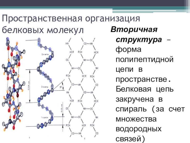 Вторичная структура – форма полипептидной цепи в пространстве. Белковая