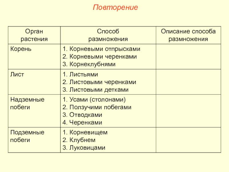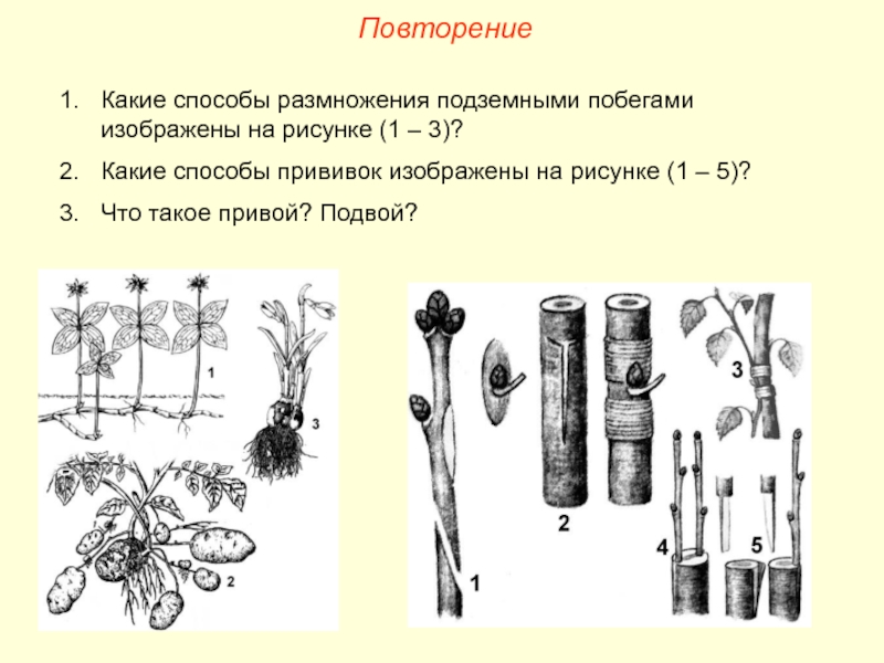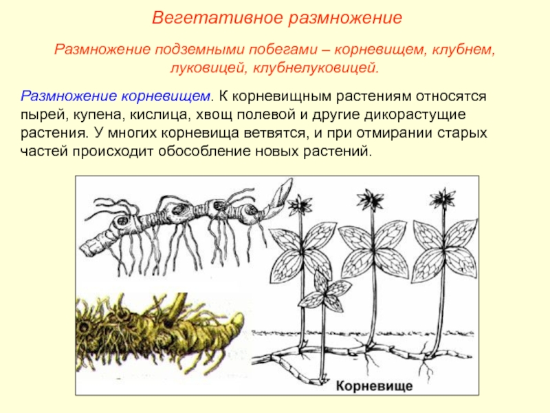 Размножение подземными побегами – корневищем, клубнем, луковицей, клубнелуковицей.