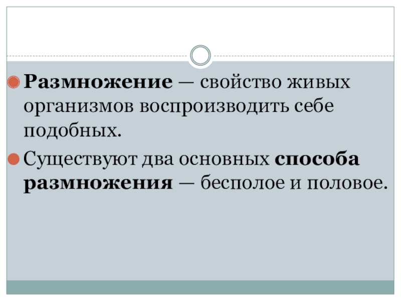 Слайд 2Размножение — свойство живых организмов воспроизводить себе подобных.