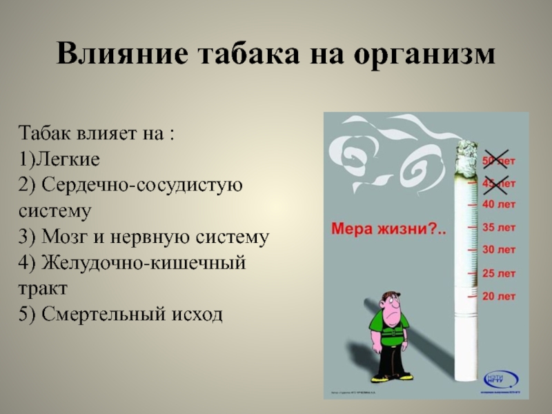 Слайд 10Влияние табака на организм