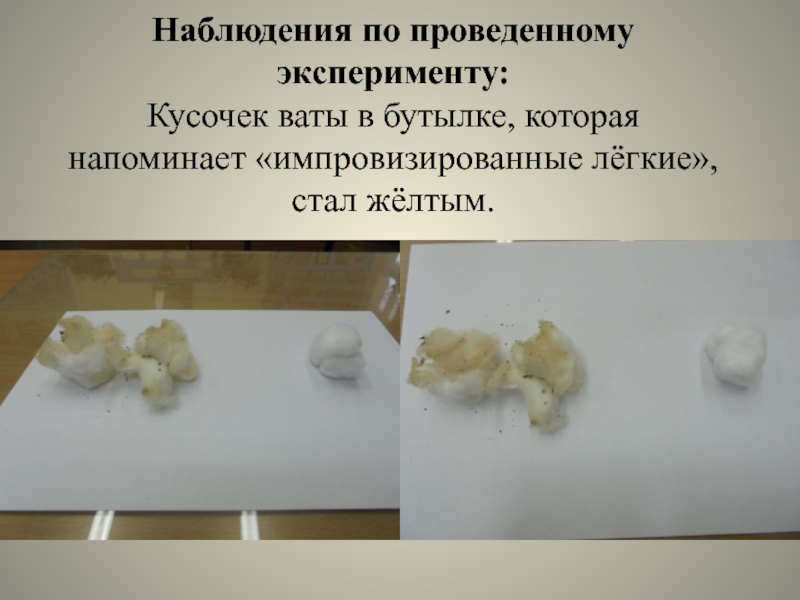 Кусочек ваты в бутылке, которая напоминает «импровизированные лёгкие»,