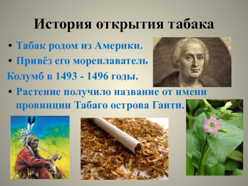 Слайд 7История открытия табака