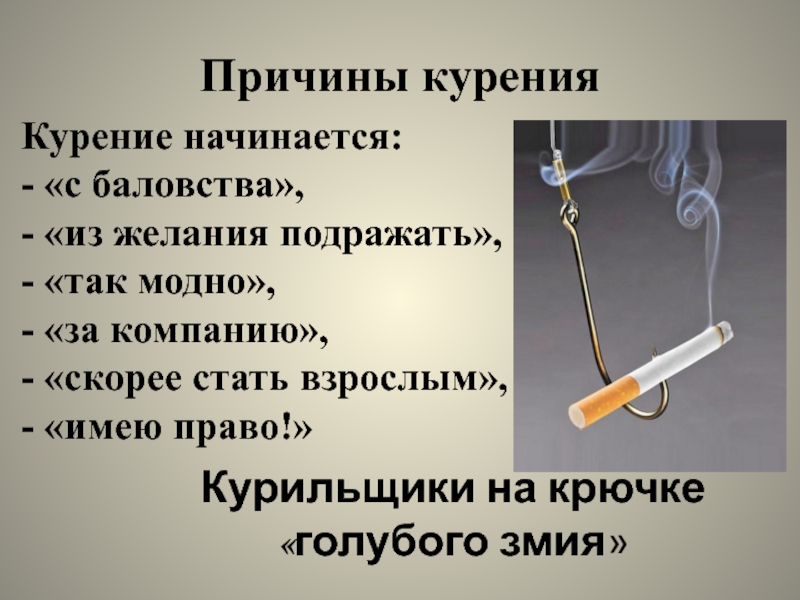 Слайд 5Почему же люди, несмотря на очевидный вред курения, продолжают соблазняться курением?