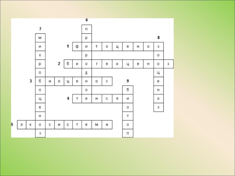 6.Сообщество, разнообразных организмов, живущих вместе на земной поверхности и образующих единую биосистему.