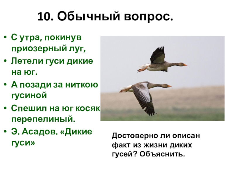 Достоверно ли описан факт из жизни диких гусей? Объяснить.