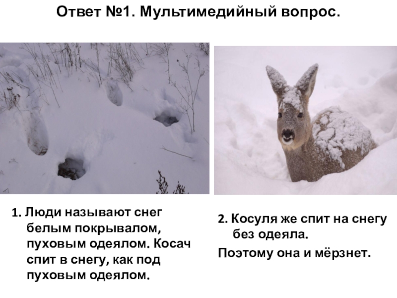 2. Косуля же спит на снегу без одеяла.