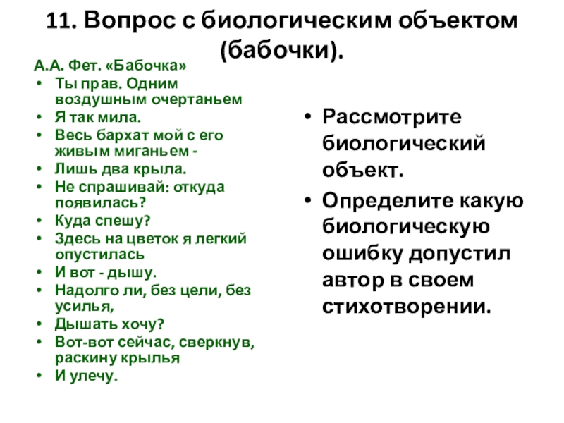 Определите какую биологическую ошибку допустил автор в своем стихотворении.