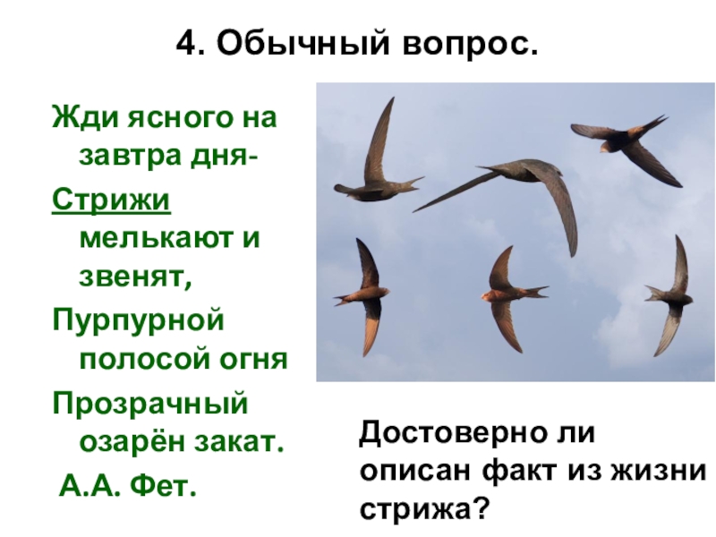 Достоверно ли описан факт из жизни стрижа?
