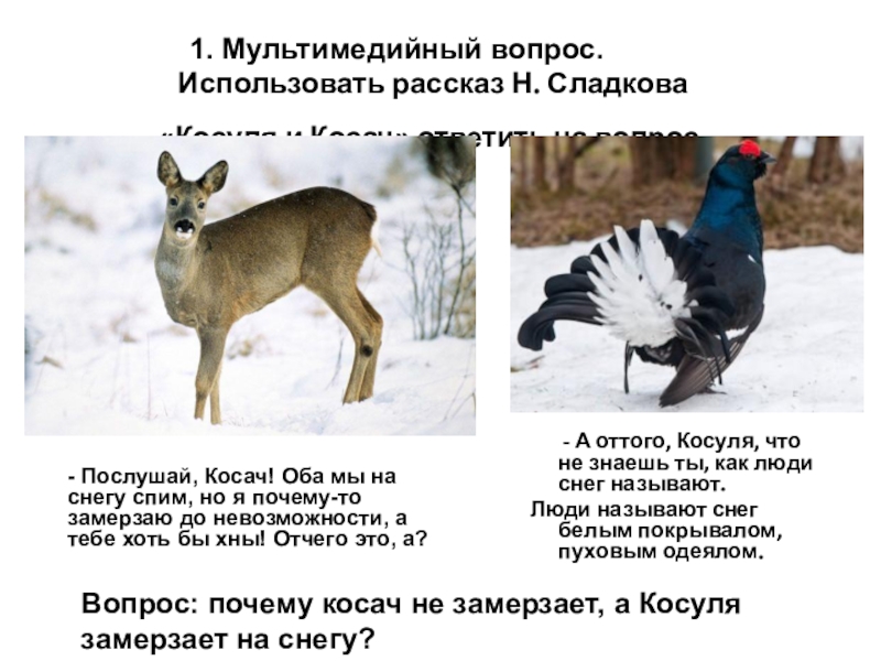 Вопрос: почему косач не замерзает, а Косуля замерзает на снегу?