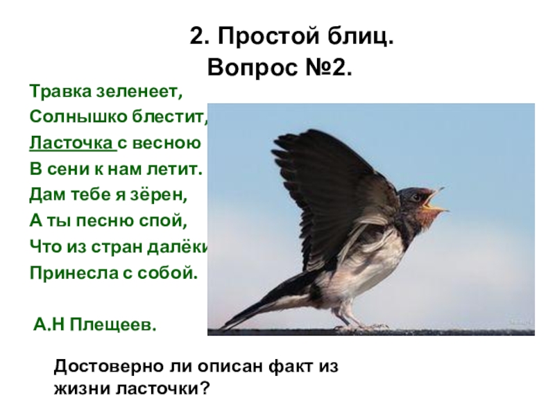 Достоверно ли описан факт из жизни ласточки?