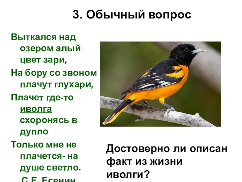 Достоверно ли описан факт из жизни иволги?