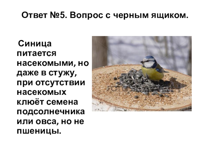 В черном ящике находится самая любимая растительная пища синичек.