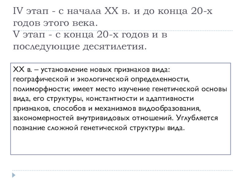 XX в. – установление новых признаков вида: