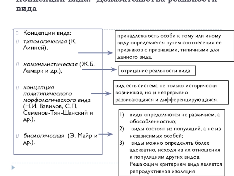 виды можно определять более адекватно, исходя из их отношения к популяциям других видов. Решающим критерием вида является репродуктивная изоляция