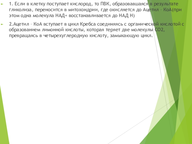 1. Если в клетку поступает кислород, то ПВК, образовавшаяся в результате