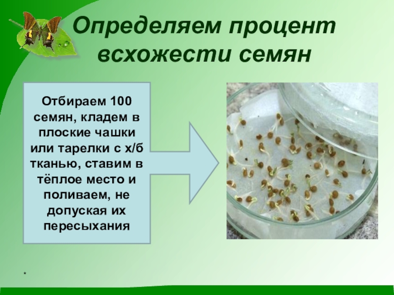 У семян первого класса всхожесть должна быть для зерновых культур не ниже 95%.