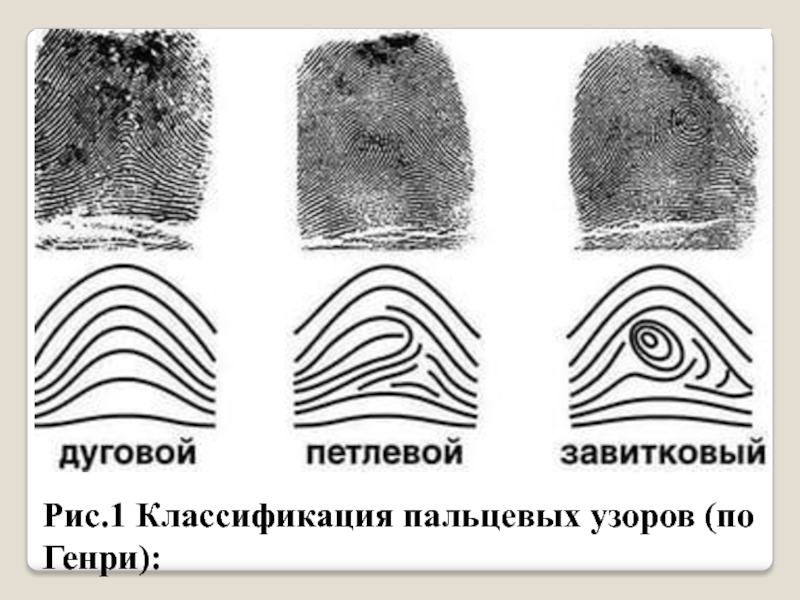 Слайд 8Рис.1 Классификация пальцевых узоров (по Генри):