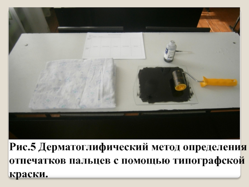 Слайд 12Рис.5 Дерматоглифический метод определения отпечатков пальцев с помощью типографской краски.