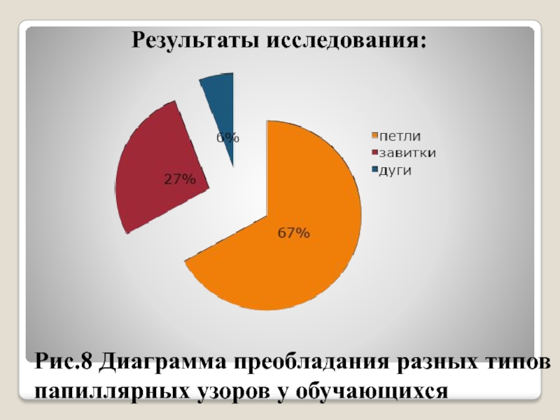 Рис.8 Диаграмма преобладания разных типов папиллярных узоров у обучающихся
