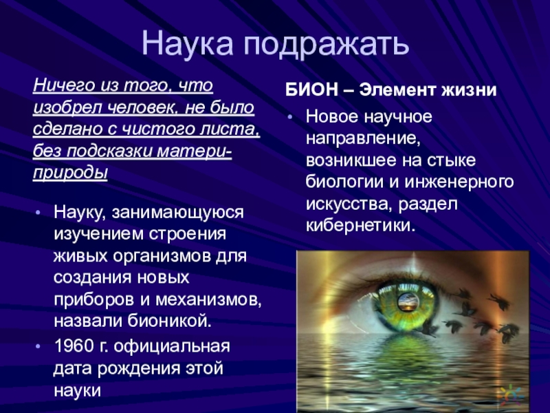 Новое научное направление, возникшее на стыке биологии и инженерного искусства, раздел кибернетики.