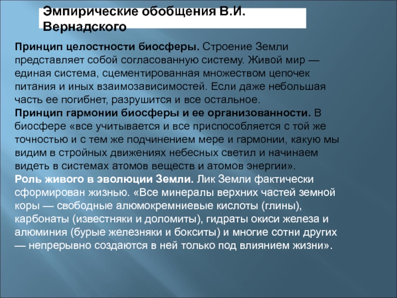 Слайд 23Эмпирические обобщения В.И. Вернадского