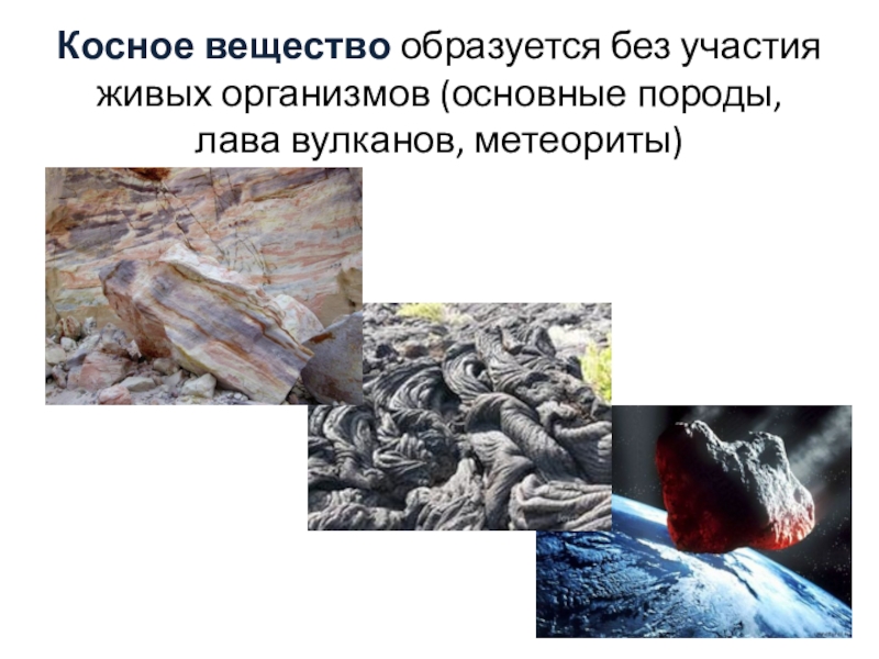 Слайд 9Косное вещество образуется без участия живых организмов (основные породы, лава вулканов,