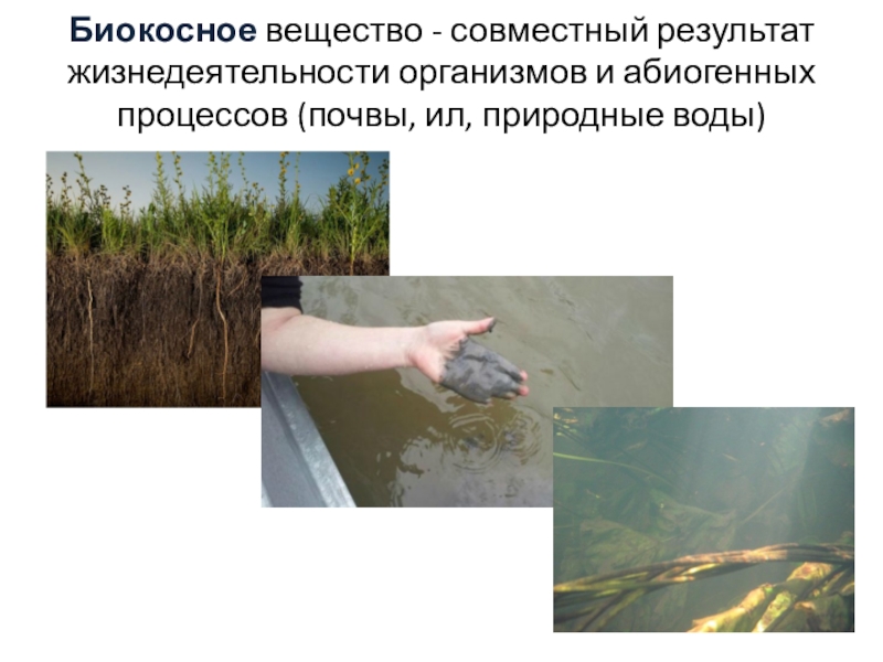Слайд 10Биокосное вещество - совместный результат жизнедеятельности организмов и абиогенных процессов (почвы,