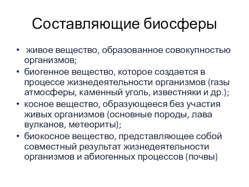 Слайд 5Составляющие биосферы по Вернадскому В.И.*