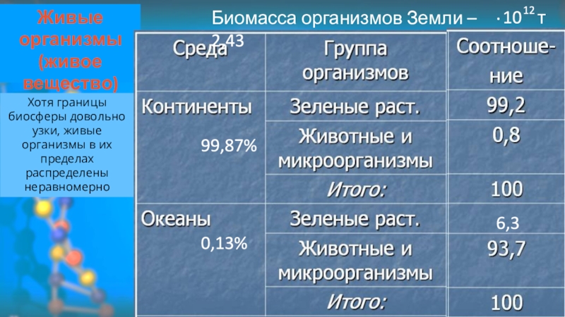 Биомасса организмов Земли – 2,43