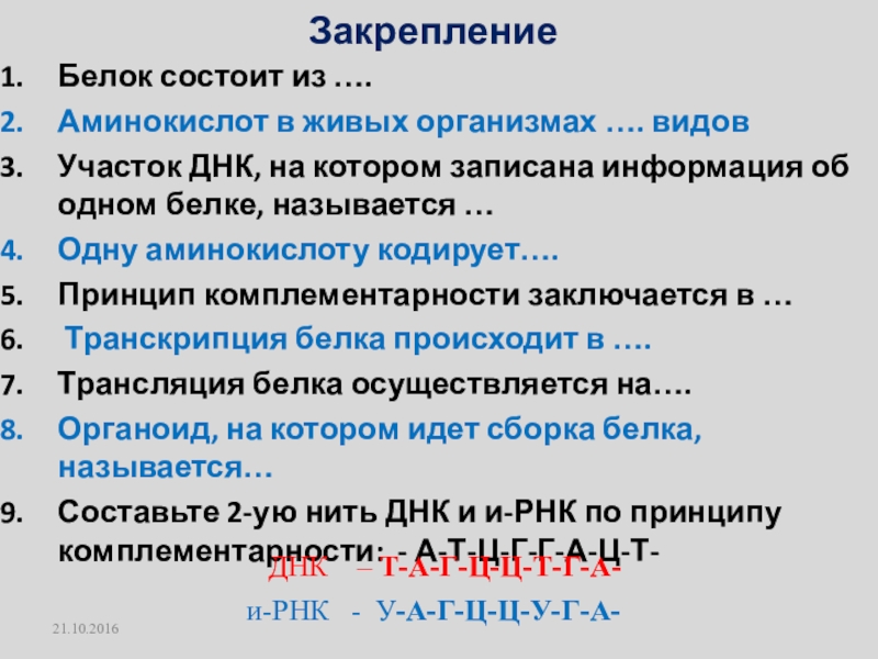 ДНК – Т-А-Г-Ц-Ц-Т-Г-А-