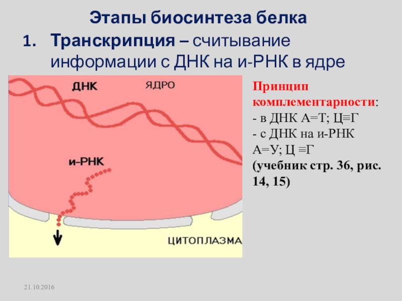- с ДНК на и-РНК А=У; Ц ≡Г