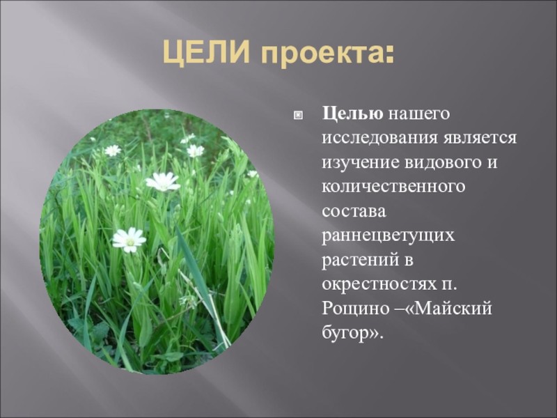 Целью нашего исследования является изучение видового и количественного состава раннецветущих