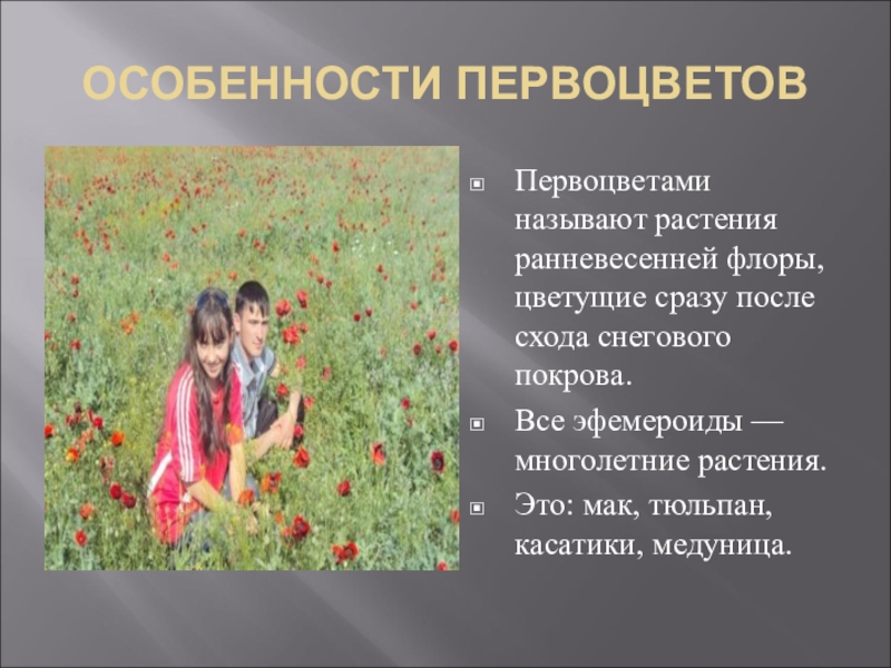 Слайд 5ОСОБЕННОСТИ ПЕРВОЦВЕТОВ