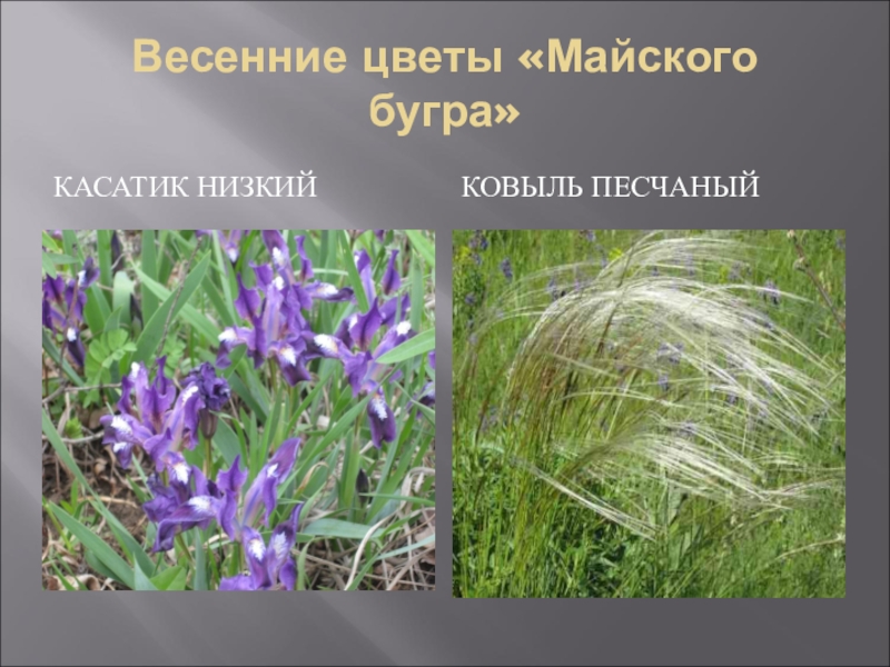 ковыль песчаный в количестве – 5 штук, касатик карликовый – 37 штук, гусиный лук – 8 штук, мак прицветниковый – 5 штук, тюльпан Шренка-7 хохлатка-0штук, одуванчиков-0 штук.
