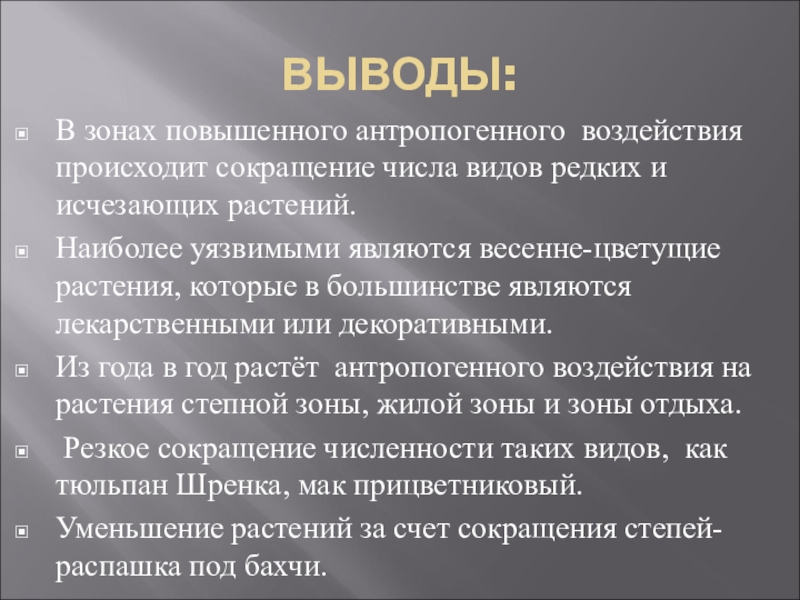 Из года в год растёт антропогенного воздействия на растения степной зоны, жилой зоны и зоны отдыха.