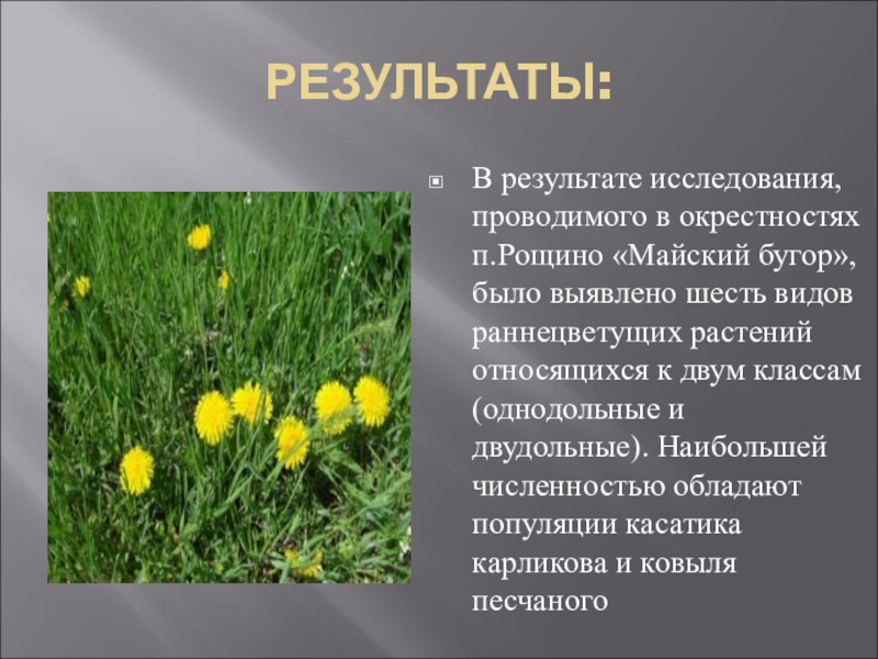 В результате исследования, проводимого в окрестностях п.Рощино «Майский бугор», было выявлено