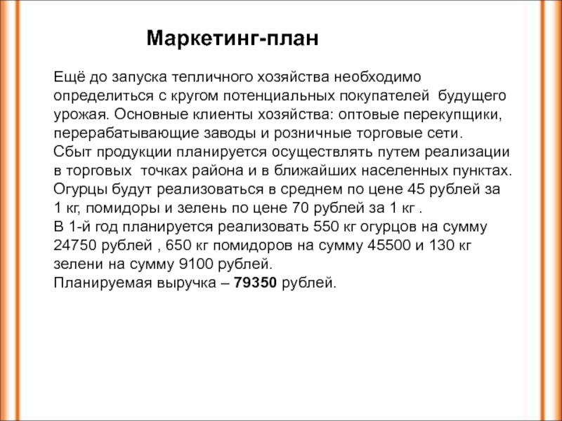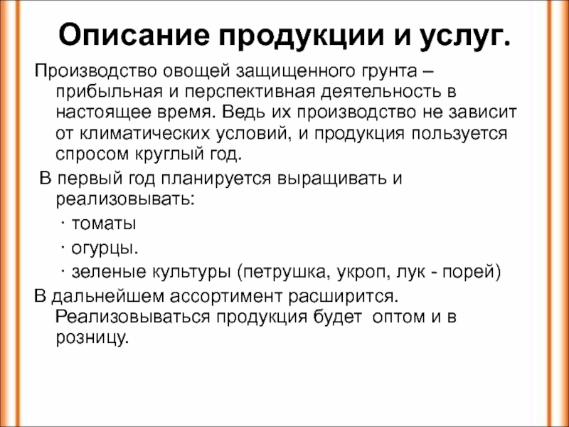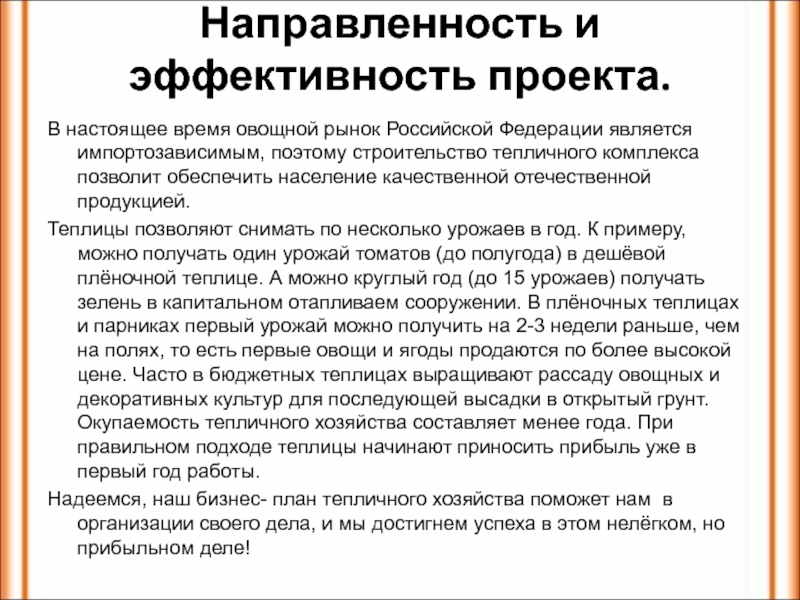Настоящим бизнес-планом предусматривается открытие тепличного хозяйства, занимающегося выращиванием,
