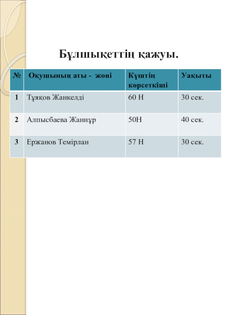 Презентация, доклад по биологии на тему Бұлшықеттің қажуы