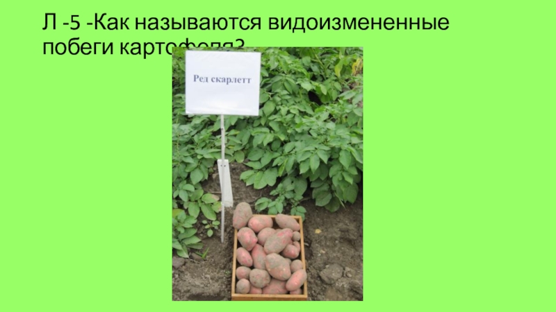 Слайд 5Л -5 -Как называются видоизмененные побеги картофеля?