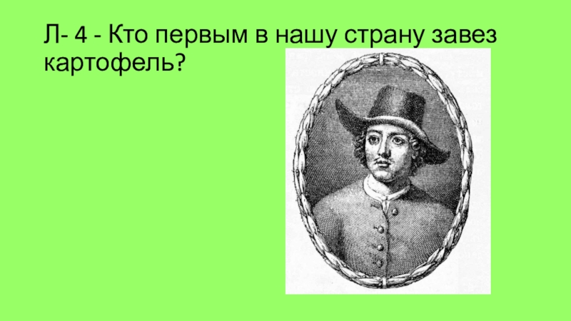 Слайд 4Л- 4 - Кто первым в нашу страну завез картофель?