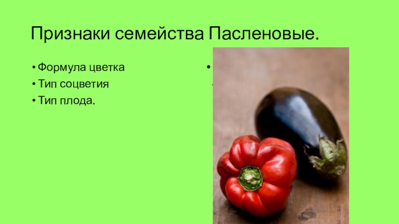 Признаки семейства Пасленовые.Формула цветкаТип соцветияТип плода.П_м___ров, ___л_ж_нов, _ер_ев.